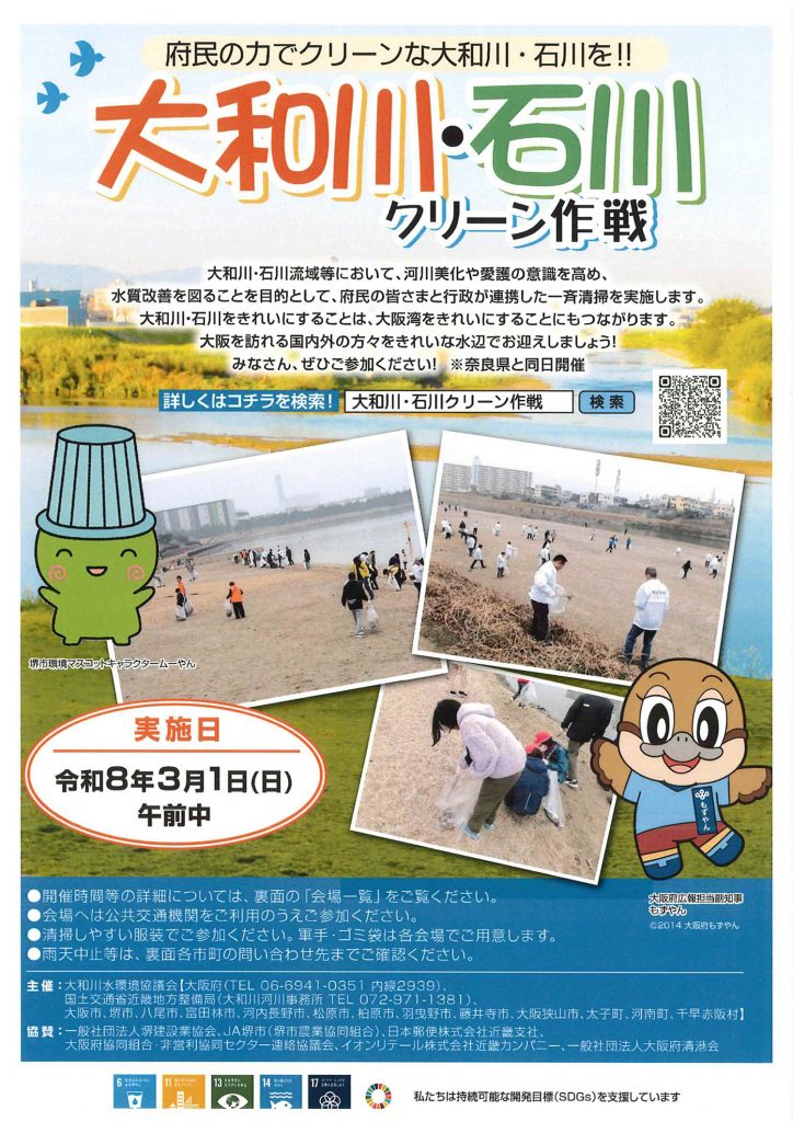 このたび弊社は、CSR(企業の社会的責任)やSDGsの観点から、大和川水環境協議会、国土交通省近畿地方整備局、大阪市ほか周辺12市町村が共同主催する「大和川・石川クリーン作戦」の趣旨に賛同し、流域の清掃活動に参加いたしました。