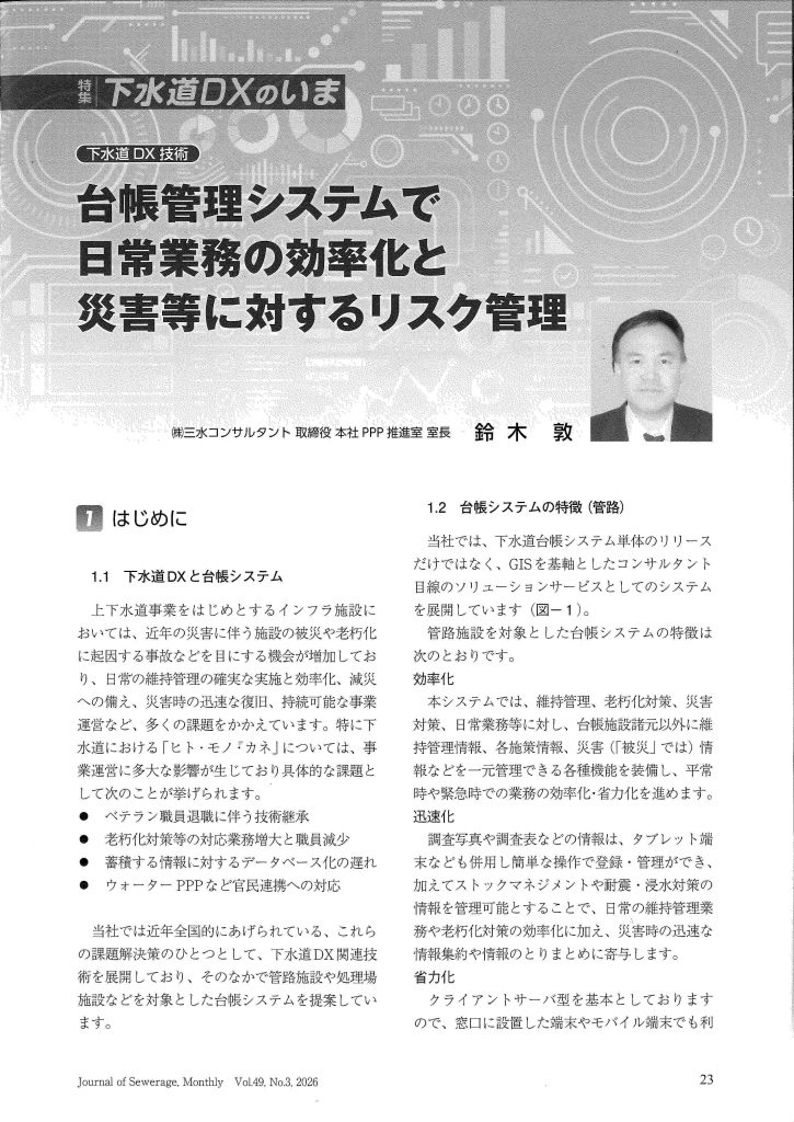 「月刊下水道」2026年3月号に当社取締役 鈴木 敦 の記事が掲載されました。